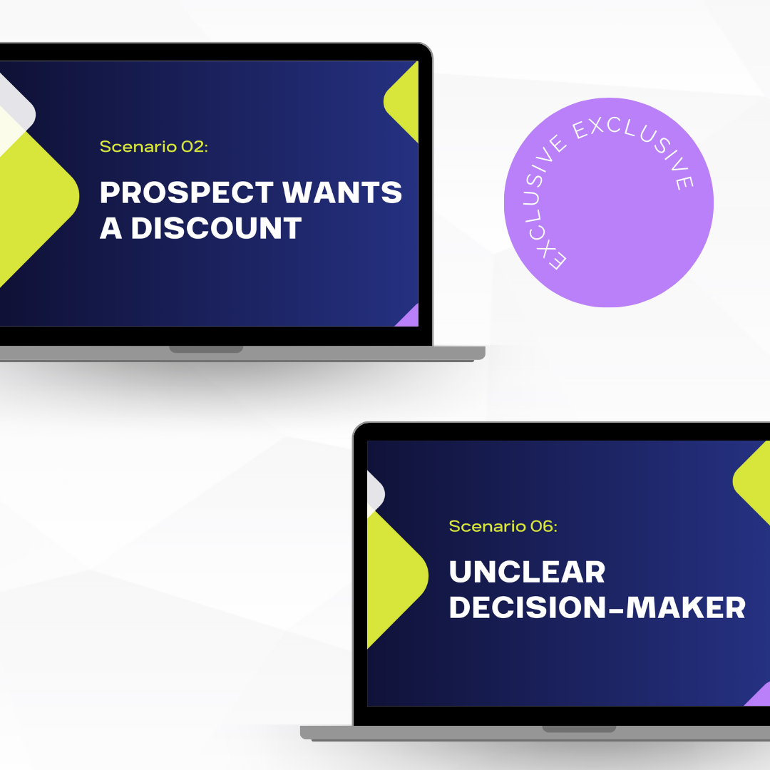 These strategies give you the scripts you need so that you can role play most scenarios bound to come your way throughout a sales process.